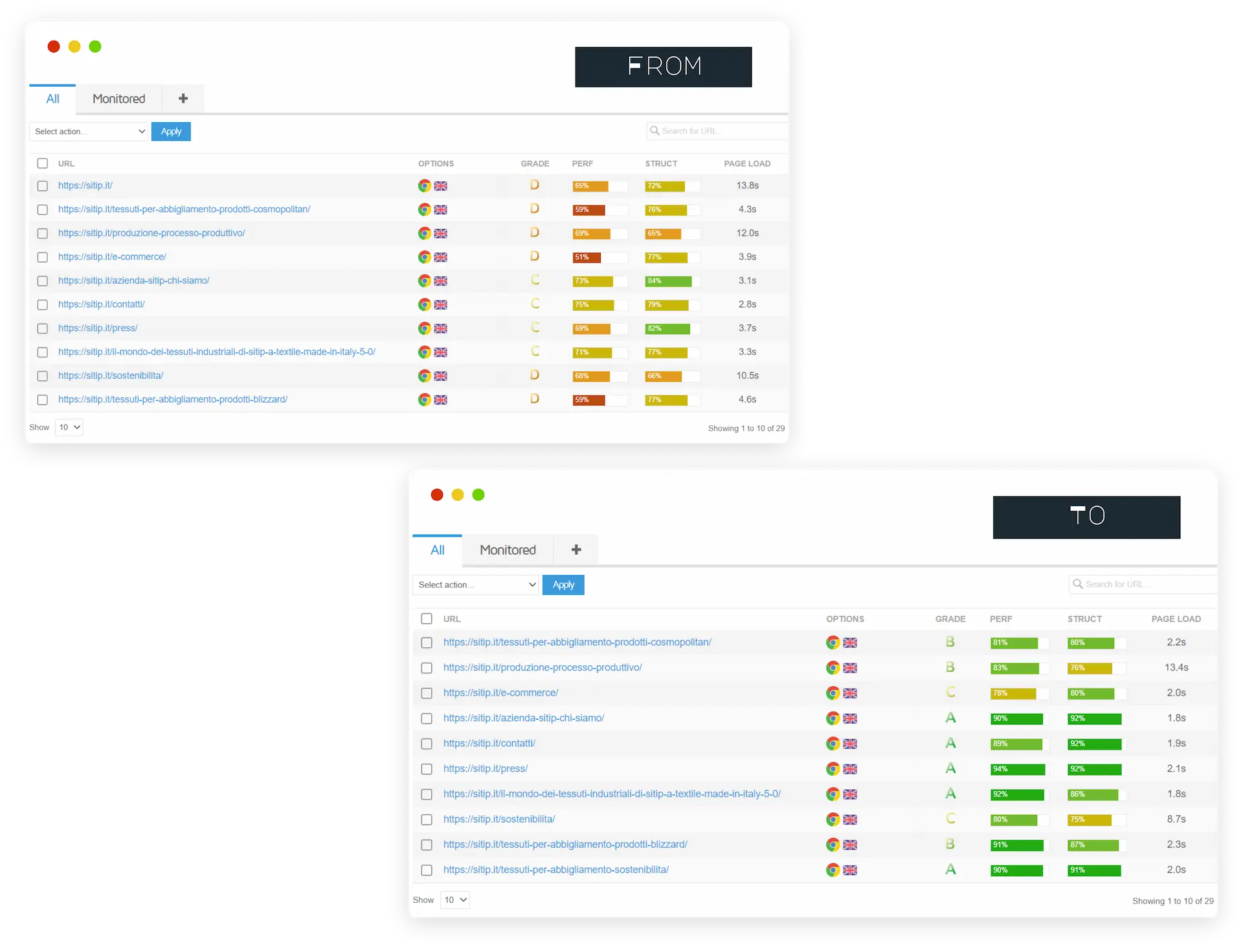 Grazie ad una particolare attenzione al dettaglio, niente è stato lasciato al caso e i risultati non sono tardati ad arrivare. In termini di performance la velocità di sito è nettamente migliorata così come anche il suo posizionamento. L’ottimizzazione SEO, però, richiede manutenzione e controllo costanti, ecco quindi che il progetto potrà solo che portare a risultati sempre migliori. Pezzo dopo pezzo.